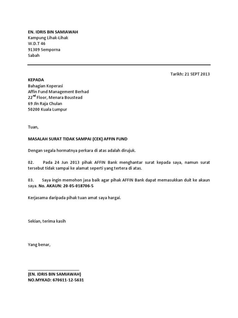 Contoh Surat Rasmi Tukar Akaun Bank Surat Rasmi W Otosection